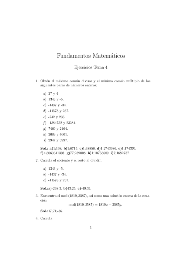 He publicado nuevos ejercicios de 1º Fundamentos Matemáticos: Tema 3: Divisibilidad y congruencias