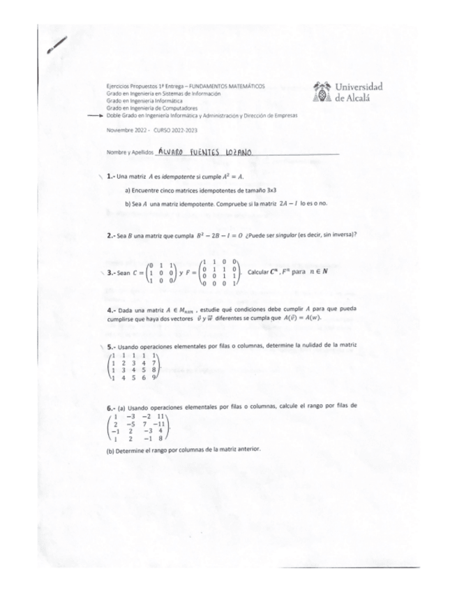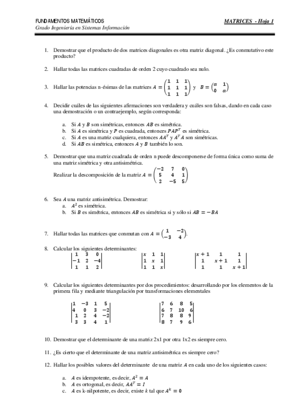 He publicado nuevos ejercicios de 1º Fundamentos Matemáticos: EjMatrices1.pdf