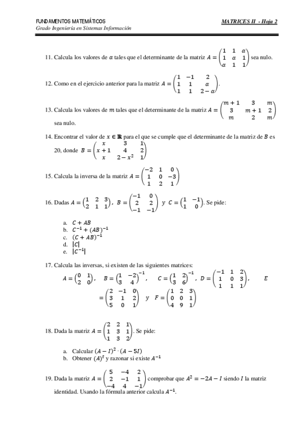 He publicado nuevos ejercicios de 1º Fundamentos Matemáticos: EjMatricesII1.pdf