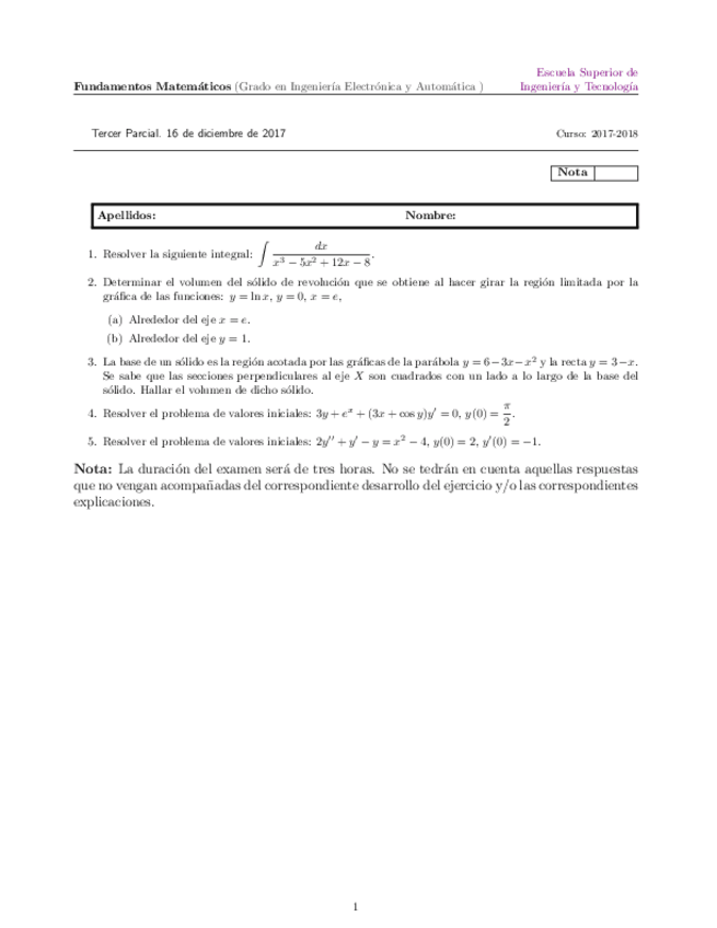 He publicado nuevos examenes de 1º Fundamentos Matemáticos: Primer parcial 2017.pdf