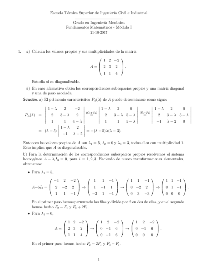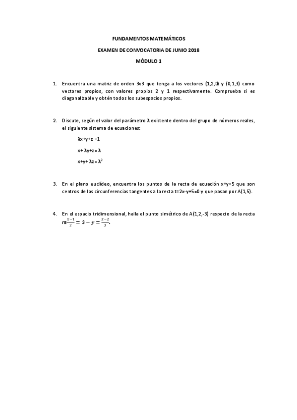 Examen resuelto junio primera parte (diagonalización y geometría)