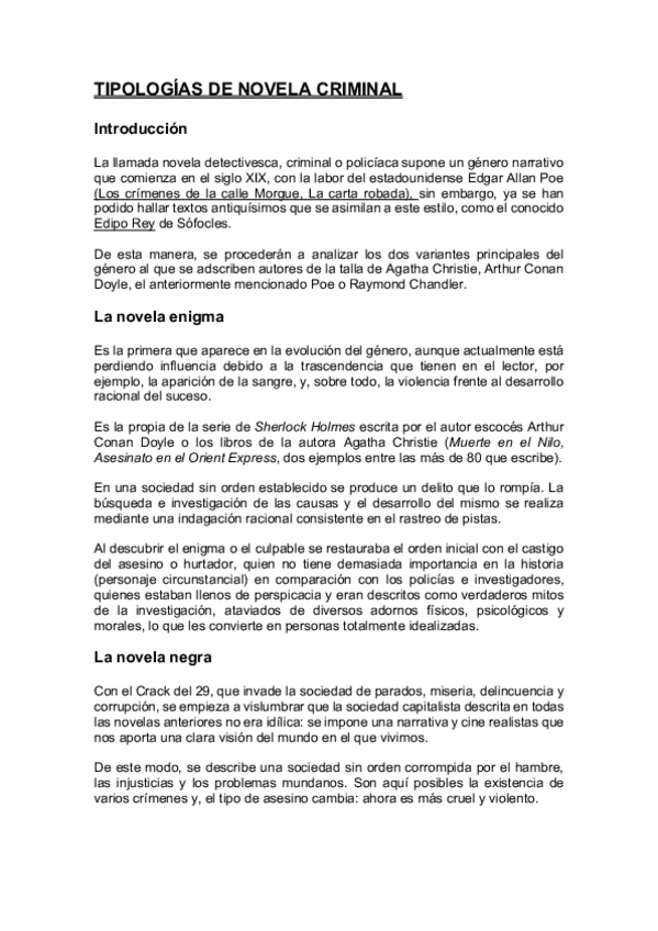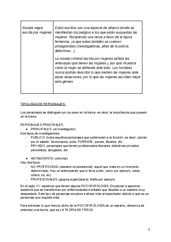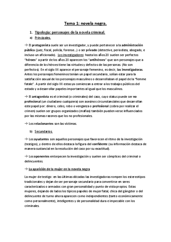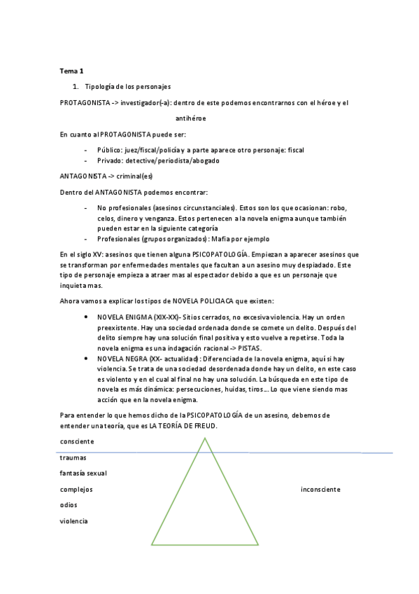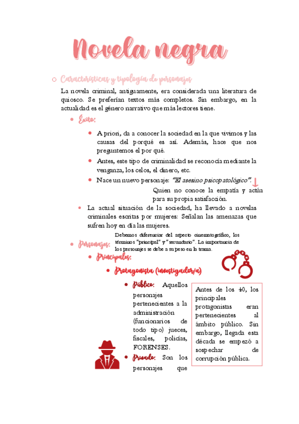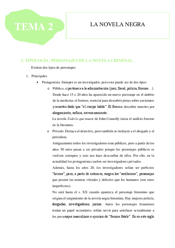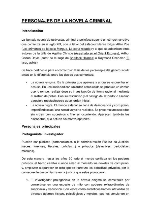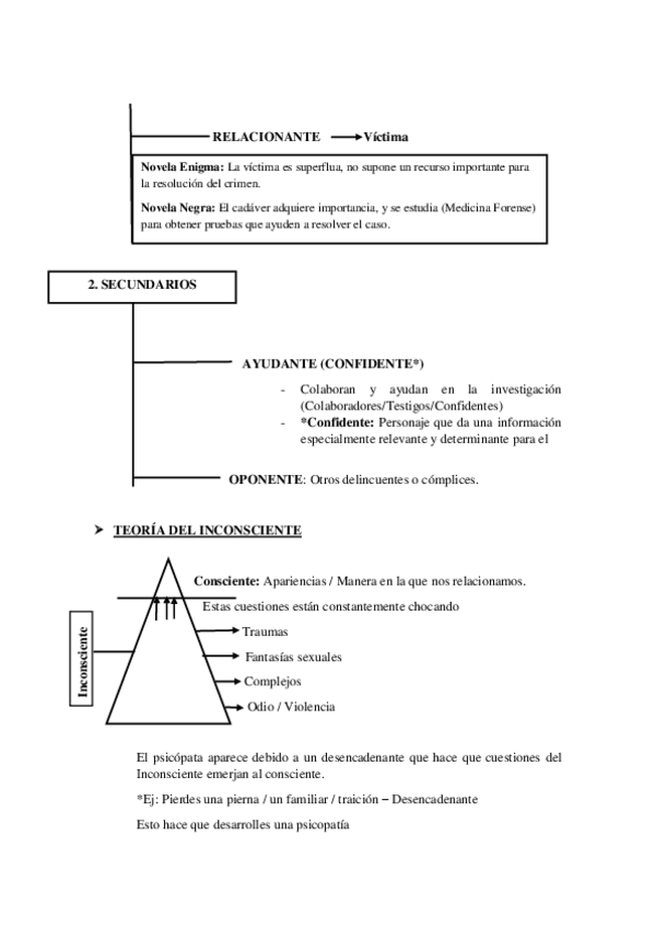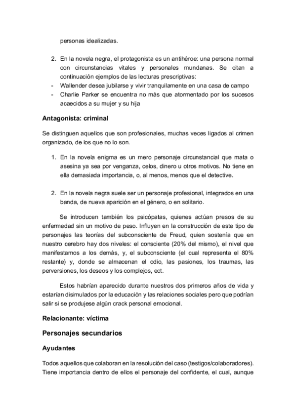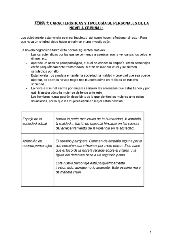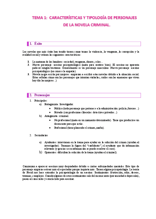 Desarrollo de tema aunado con el de los personajes de la novela criminal.