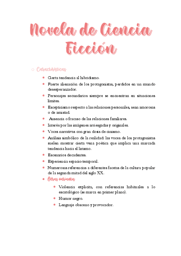 Desarrollo de tema aunado con el de las características de los subgéneros.