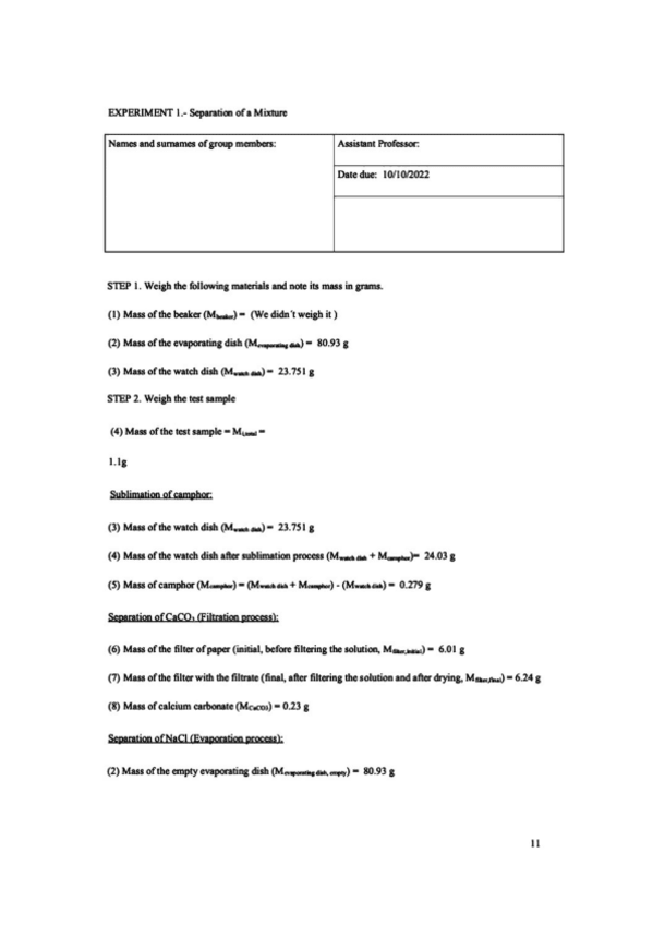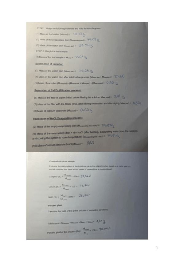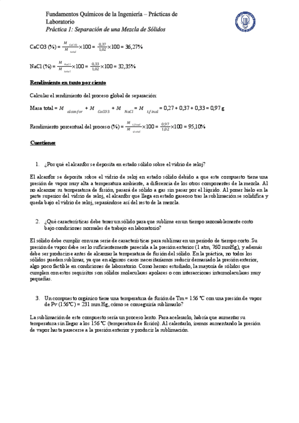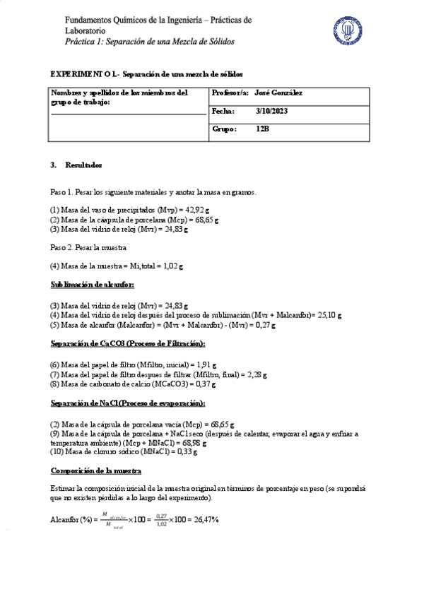 He publicado nuevos practicas de 1º Fundamentos Químicos de la Ingeniería: SEPARATION OF A MIXTURE LAB.pdf