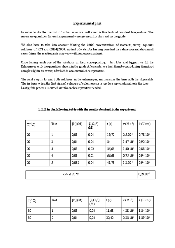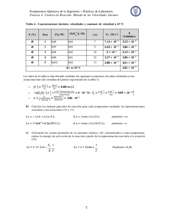 He publicado nuevos practicas de 1º Fundamentos Químicos de la Ingeniería: REACTION KINETICS AND METHOD OF INITIAL RATES LAB.pdf