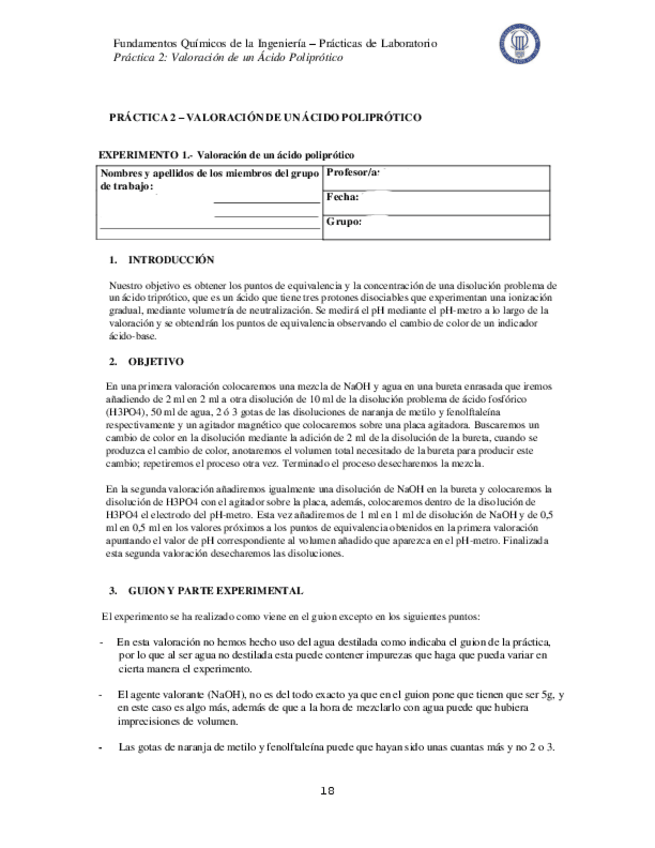 He publicado nuevos practicas de 1º Fundamentos Químicos de la Ingeniería: TITRATION OF A POLYPROTIC ACID LAB.pdf
