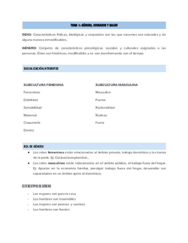 He publicado nuevos apuntes de 1º Género y Salud: Apuntes género y salud