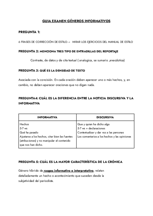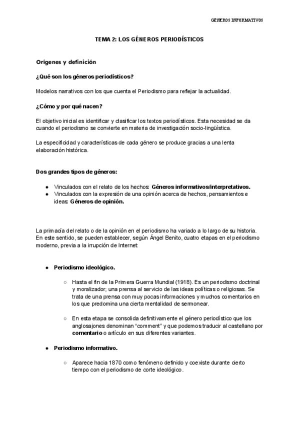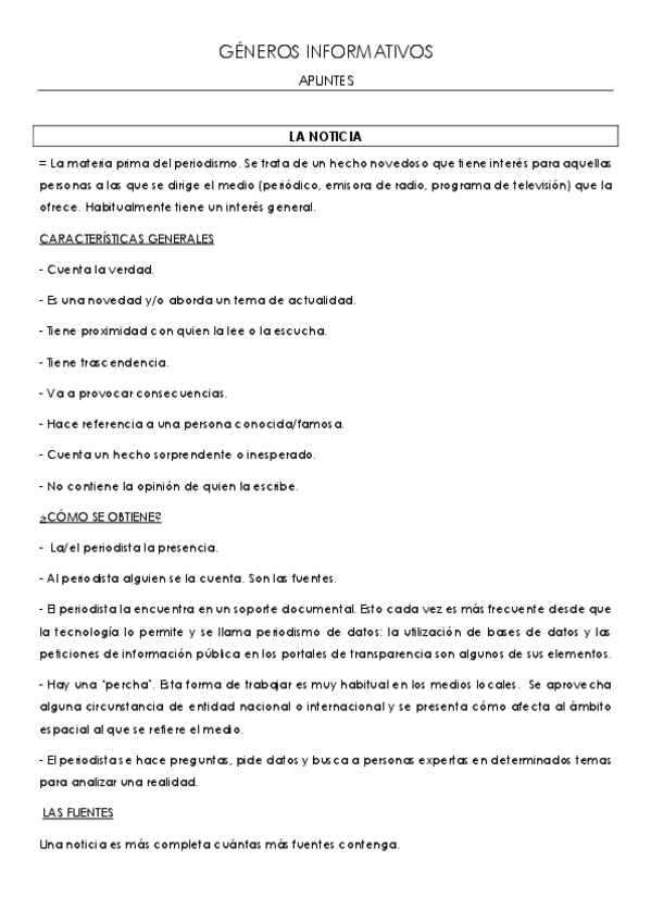 Apunte de Géneros Informativos en castellano