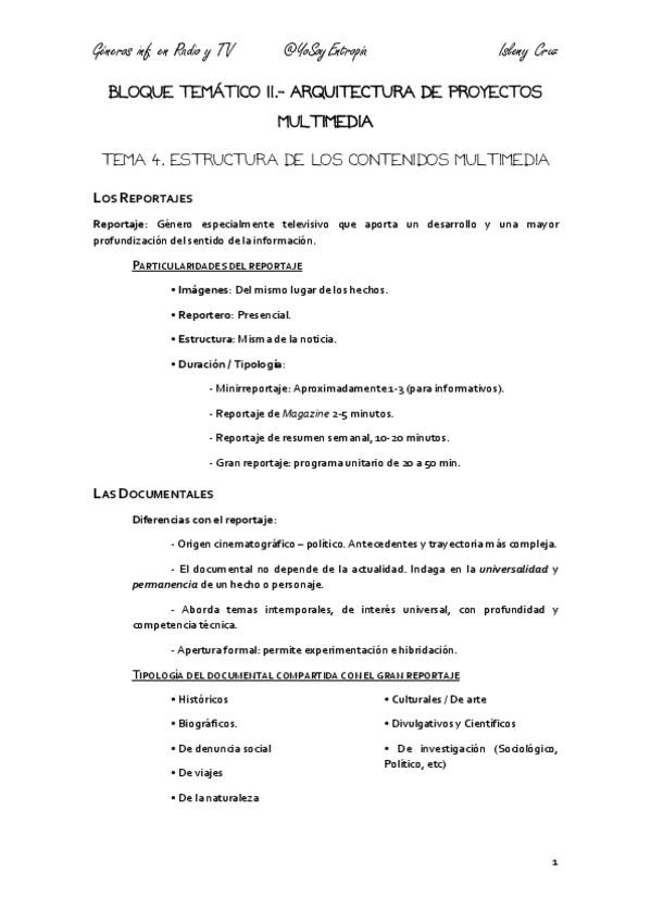 He publicado nuevos apuntes de 3º Géneros Informativos en Radio y Televisión: EL REPORTAJE.pdf