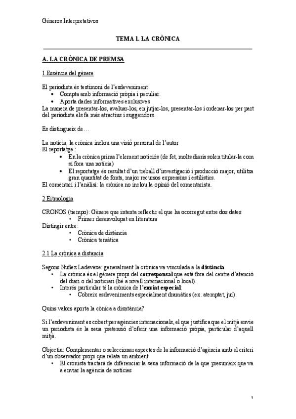 Apuntes de los temas de Géneros Interpretativos en CASTELLANO