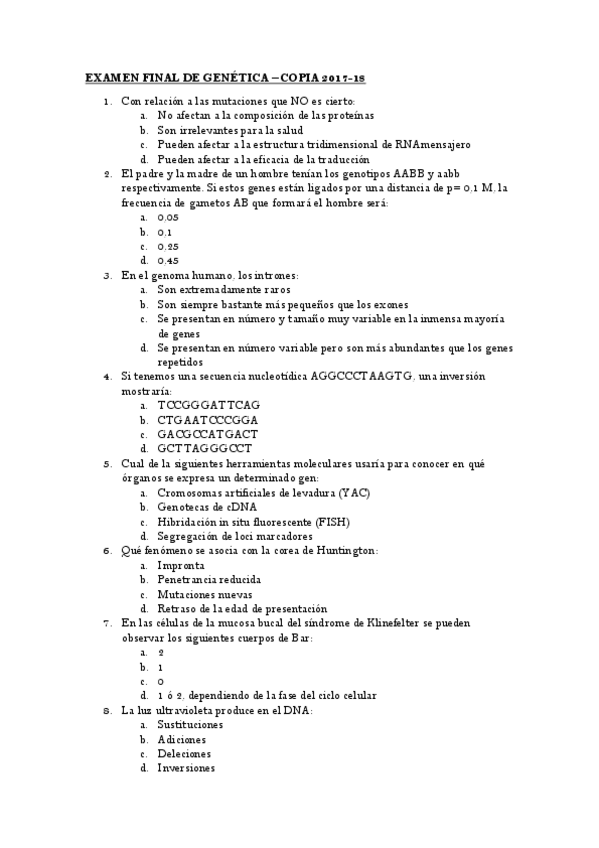 He publicado nuevos examenes de 2º Genética Humana: Examen-final-de-Genetica.pdf