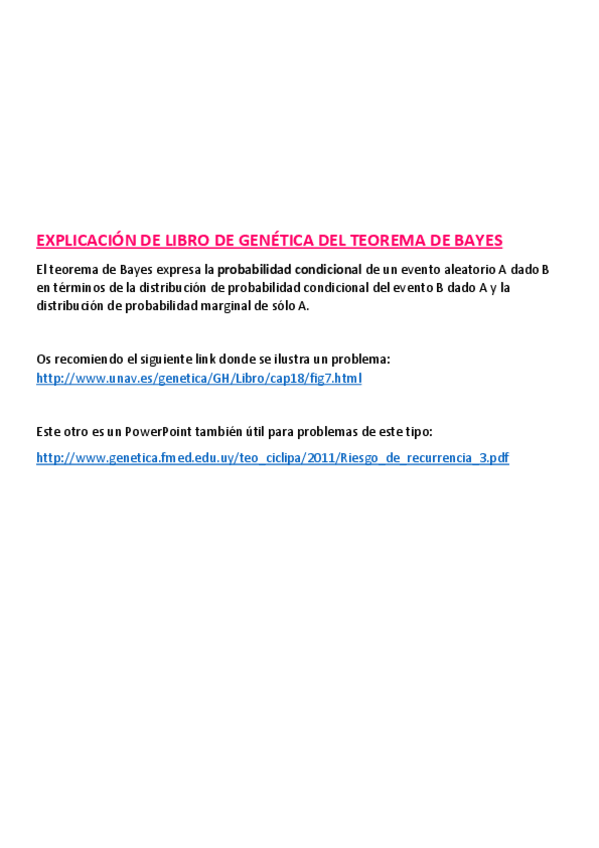 He publicado nuevos apuntes de 4º Genética Humana: Explicación de Teorema de Bayes. Libro de Genética.pdf
