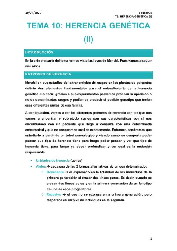Bloque II. Herencia mendeliana. T7-10.