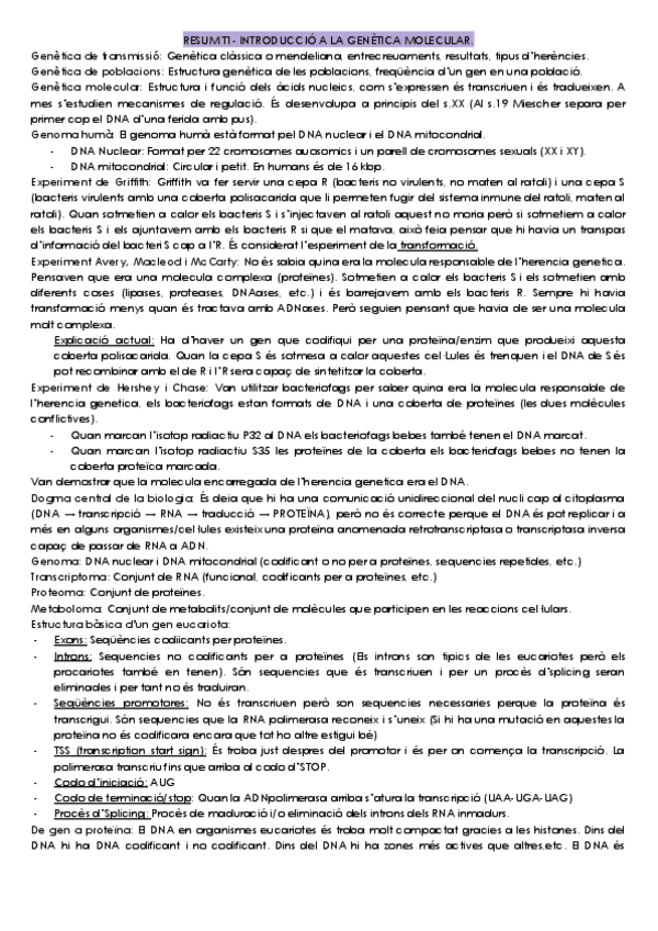 Genètica Molecular 1r parcial