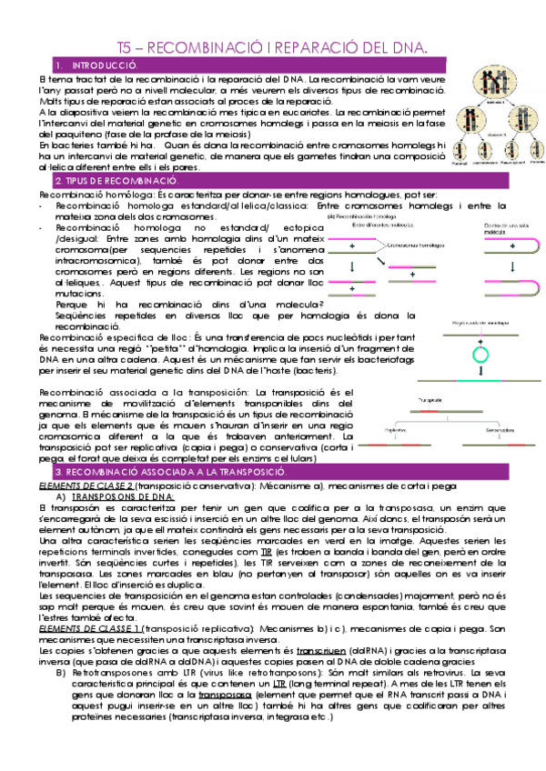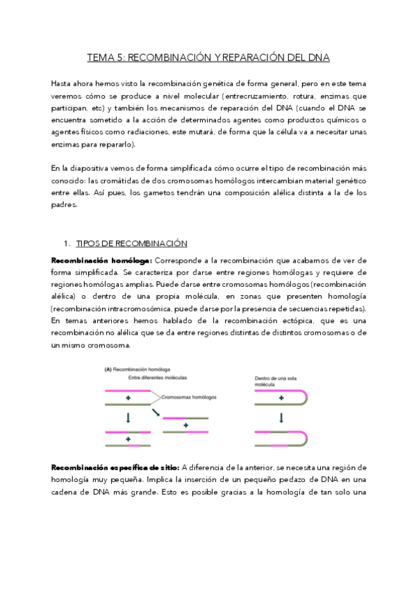 He publicado nuevos apuntes de 2º Genética Molecular: T5. Recombinacion y reparación del DNA.pdf