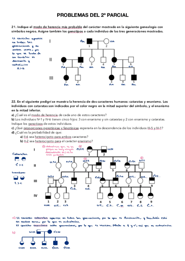He publicado nuevos ejercicios de 2º Genética: Problemas Parcial 1