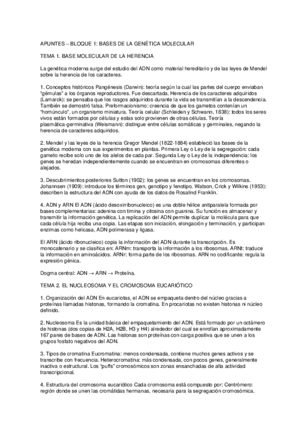 APUNTES GENETICA 1º CUATRI