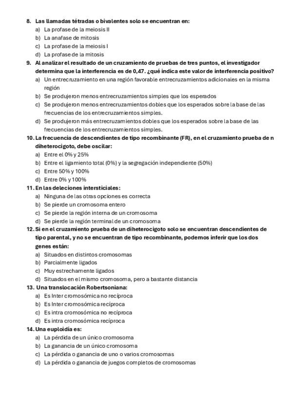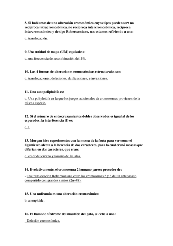 Cuestionarios Genética 2º Cuatrimestre