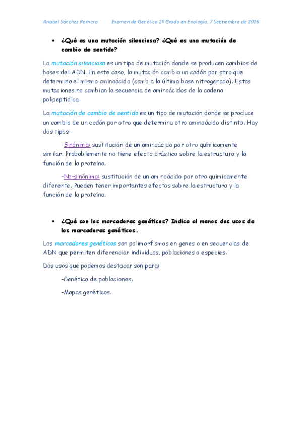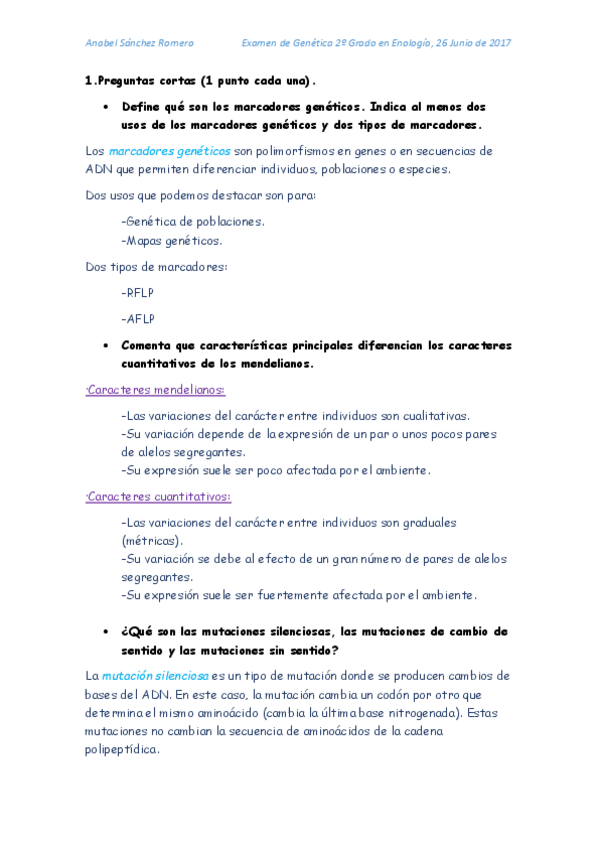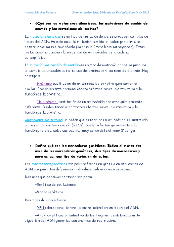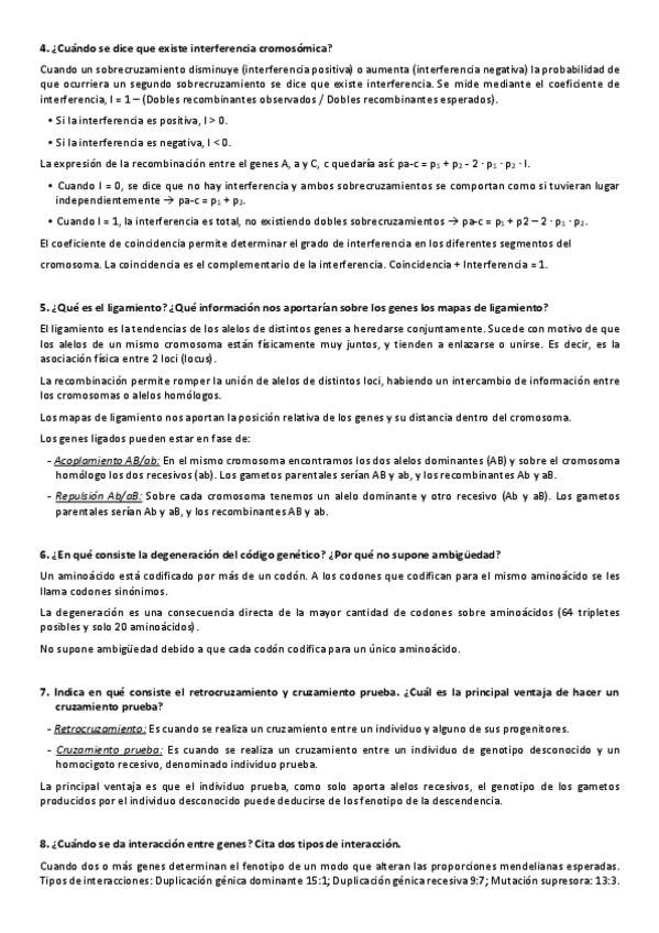 He publicado nuevos apuntes de 2º Genética: Preguntas y cuestionario examen