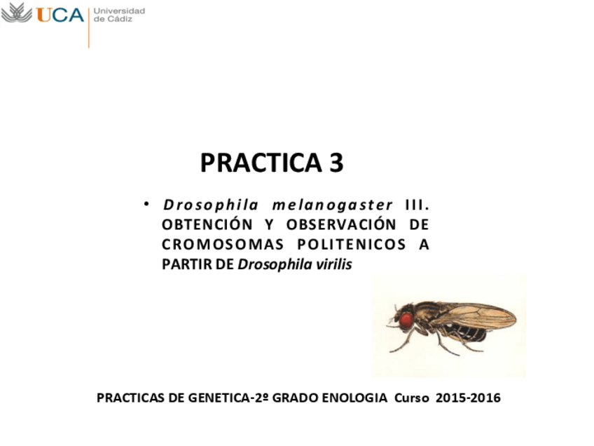 He publicado nuevos apuntes de 2º Genética: Práctica 3. Obtención y observación de cromosomas politénicos de Drosophila. 2015-2016.pdf