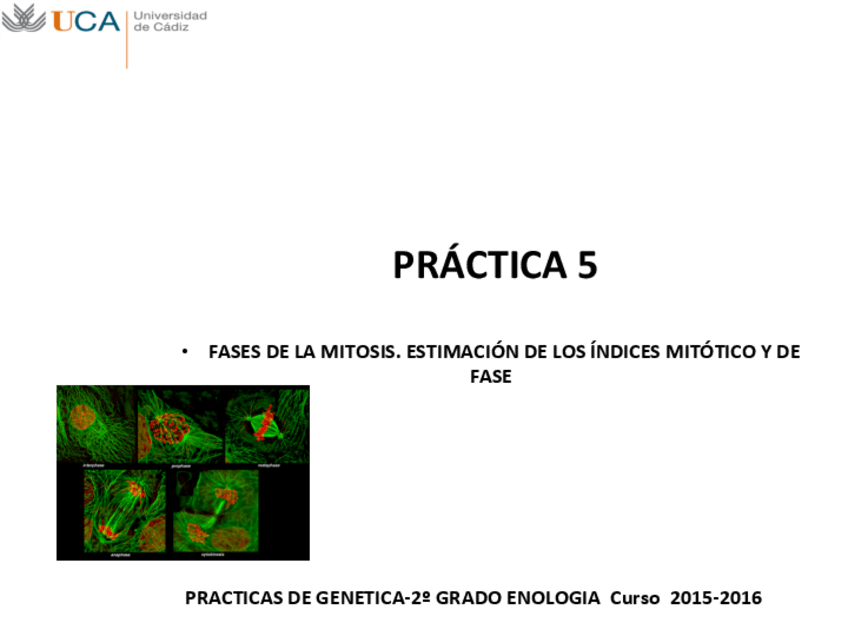 He publicado nuevos apuntes de 2º Genética: Práctica 5. Fases de la Mitosis. Estimación de los índices mitóticos y de fase. 2015-2016.pdf