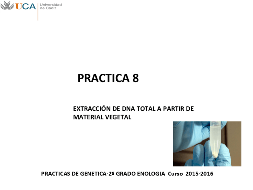 He publicado nuevos apuntes de 2º Genética: Practica 8. Extracción de ADN total a partir de material vegetal. 2015-2016.pdf