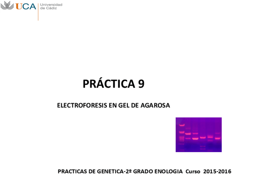 He publicado nuevos practicas de 2º Genética: Práctica 9 . Electroforesis en gel de agarosa. 2015-2016.pdf