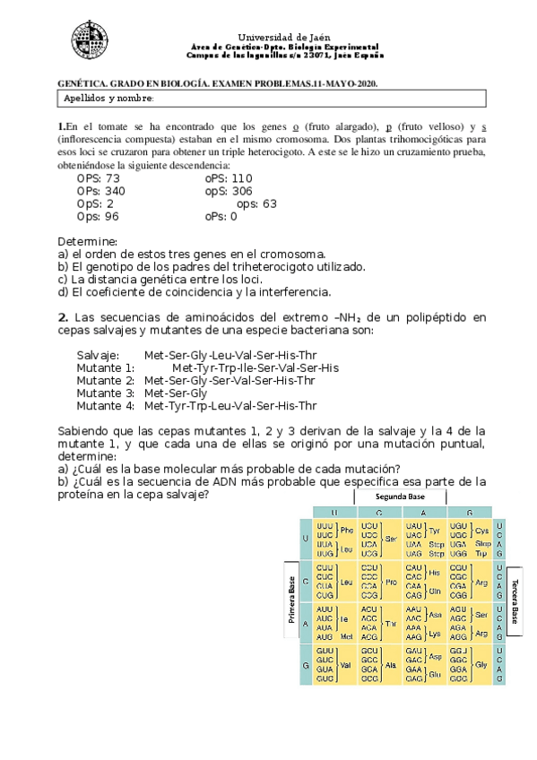 He publicado nuevos examenes de 3º Genética: Examen Genética Ordinaria I.pdf
