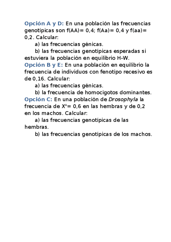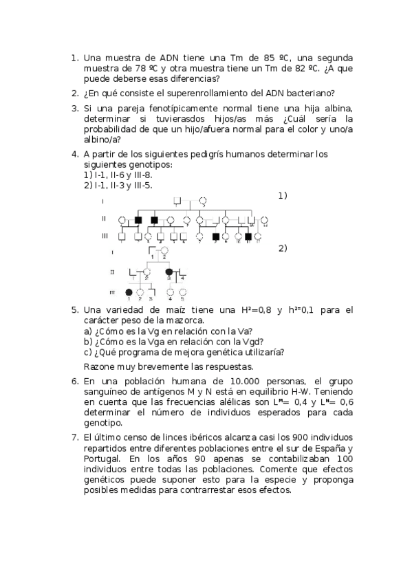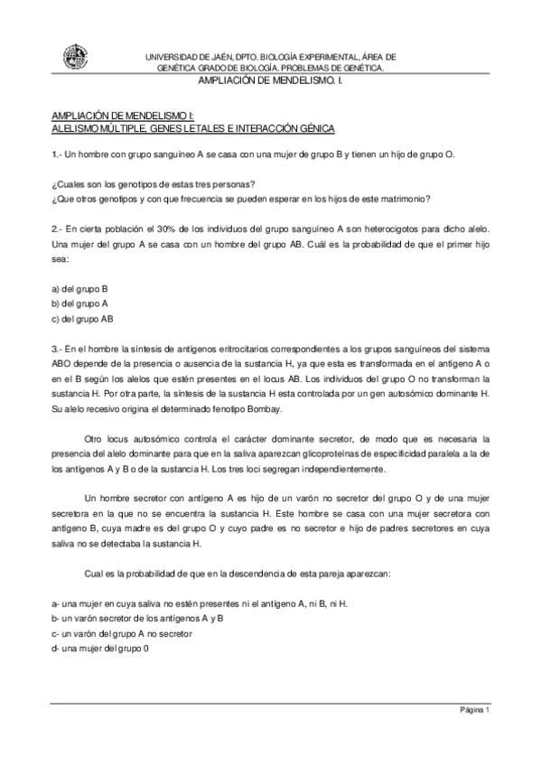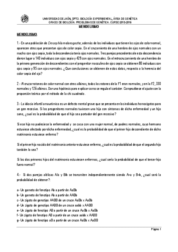 Genética. Sesiones de problemas de otros años