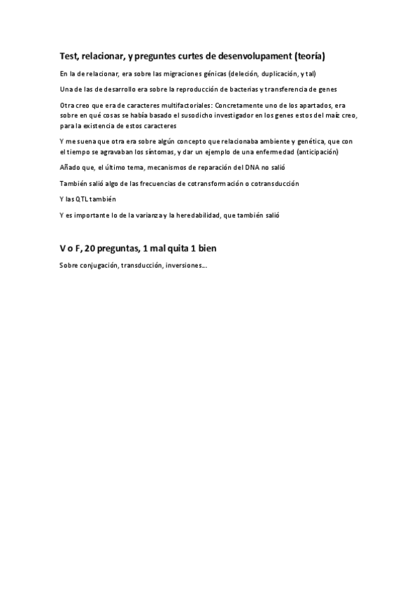 He publicado nuevos apuntes de 2º Genética: Examenes 2020 genética