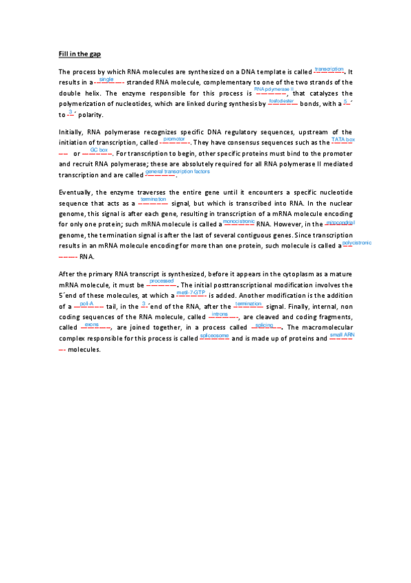 He publicado nuevos ejercicios de 1º Genética: Fill-in-the-gaps-transcription.pdf