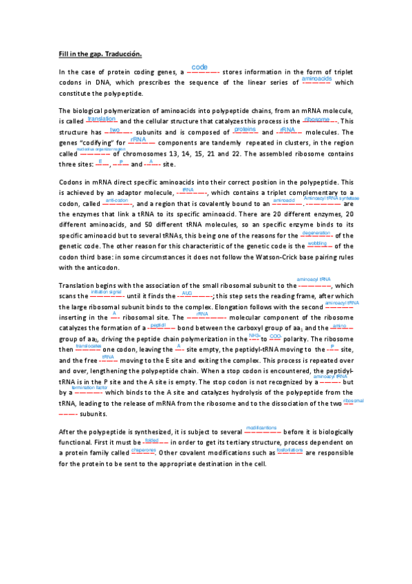 He publicado nuevos ejercicios de 1º Genética: Fill-in-the-gaps-translation.pdf