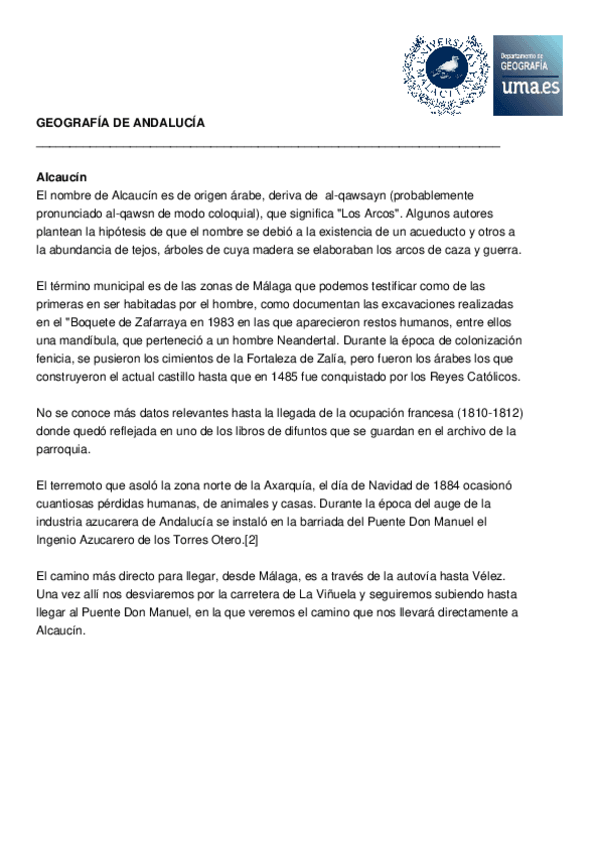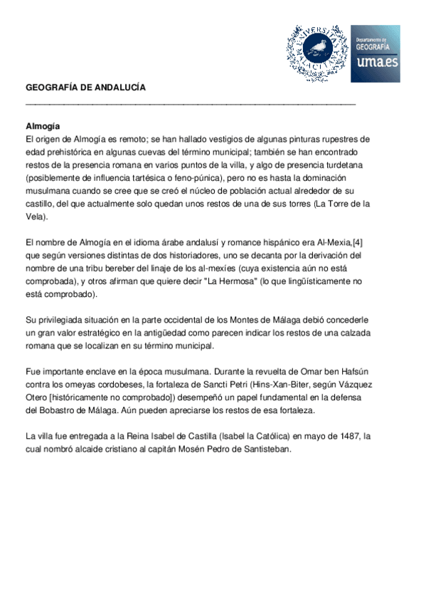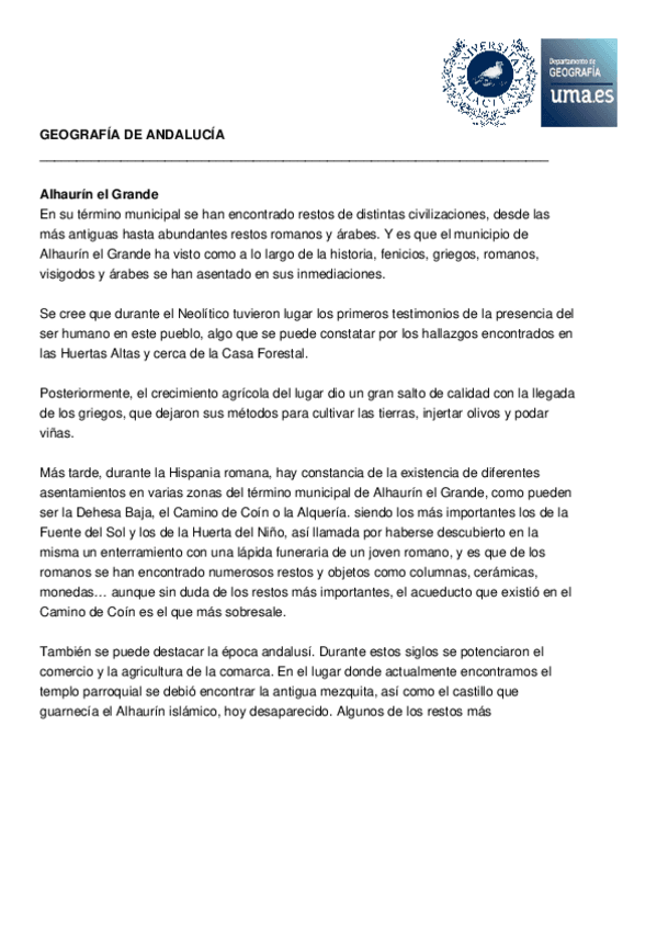 Historia de los pueblos de Málaga