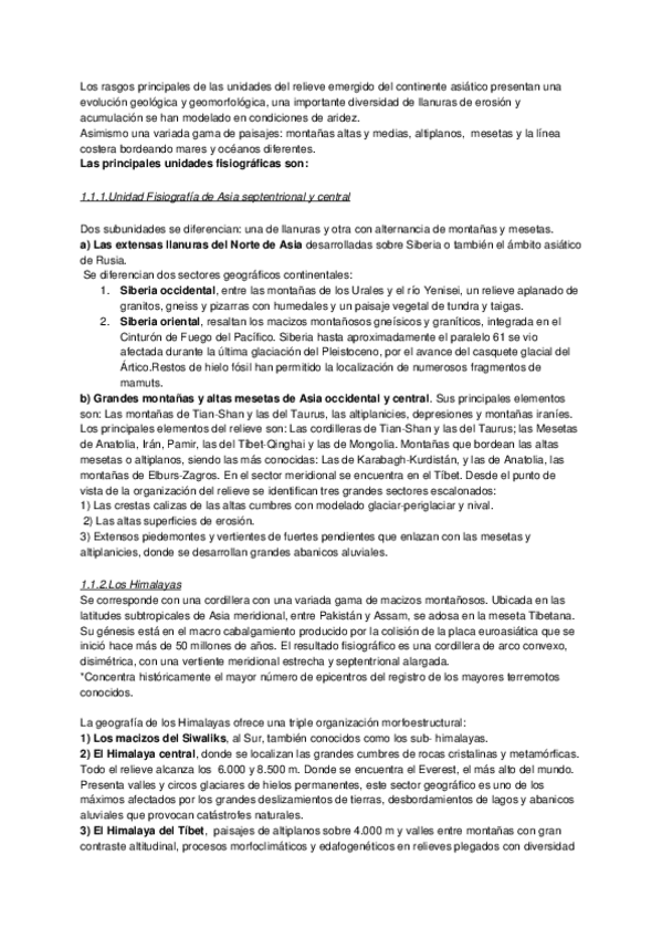 He publicado nuevos apuntes de 1º Geografía de Asia: Fisiografía del relieve.pdf
