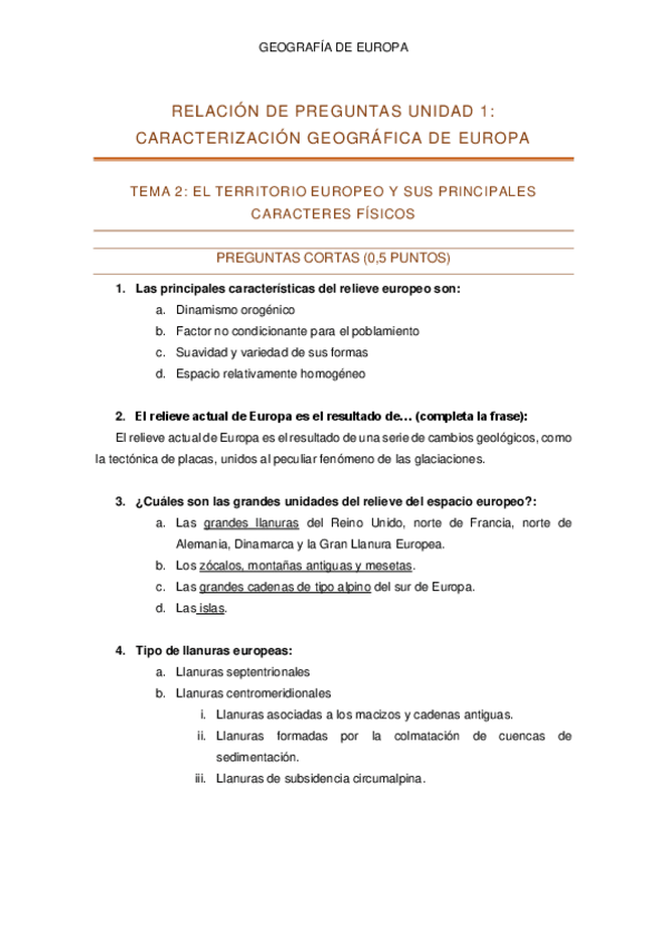CUESTIONARIOS GEOGRAFÍA EUROPA