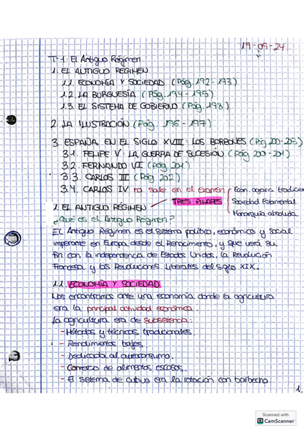 Apuntes del Antiguo Régimen enumerados y con buena letra.