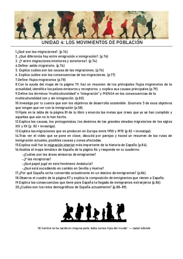 Preguntas de practica con sus respuesta de geografia T5: Movimientos de la poblacion 3ESO