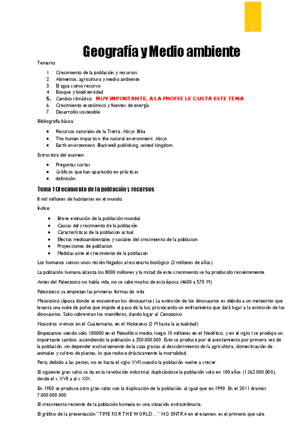 Apuntes de Geografía y medio ambiente temas 1 a 7.