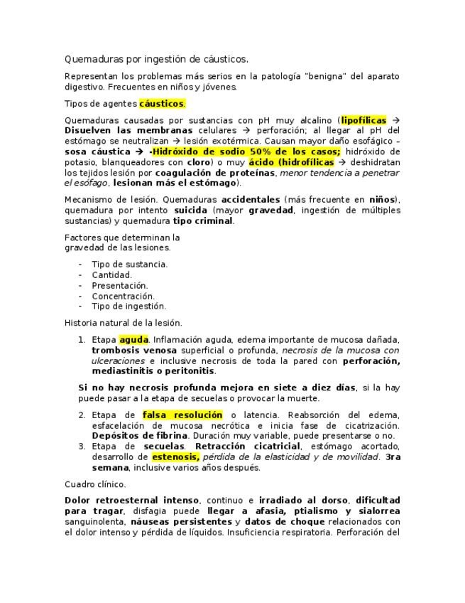 Quemaduras por ingestión de cáusticos