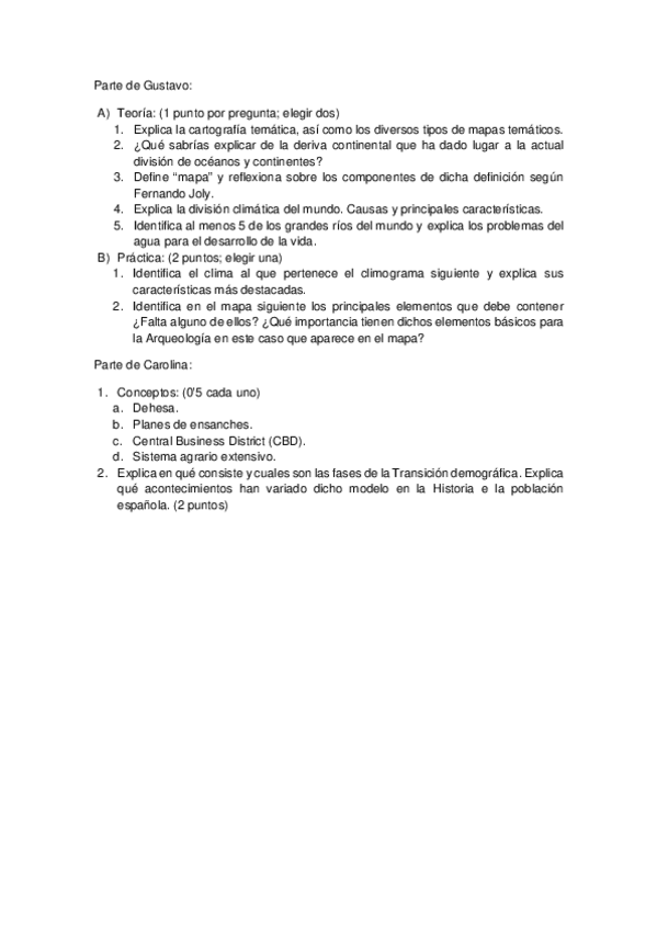Buenas tardes, ¿alguien podría subir un documento con las proguntas del examen de geografía de enero de 2025?
