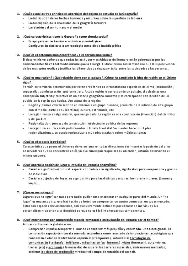 Temas 1-4 Geografía física; 5-7Geografía humana