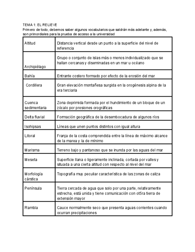 Vocabulario Geografía PAU
