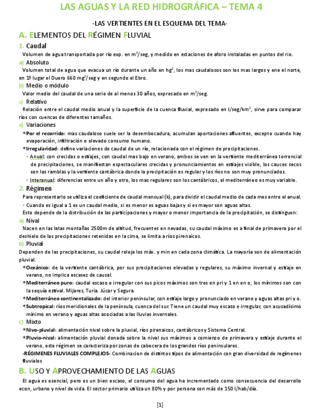 4. LAS AGUAS Y LA RED HIDROGRÁFICA. Las vertientes hidrográficas españolas. Los ríos y las cuencas hidrográficas. Los regímenes fluviales. Uso y aprovechamiento de las aguas.