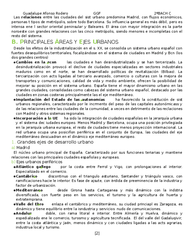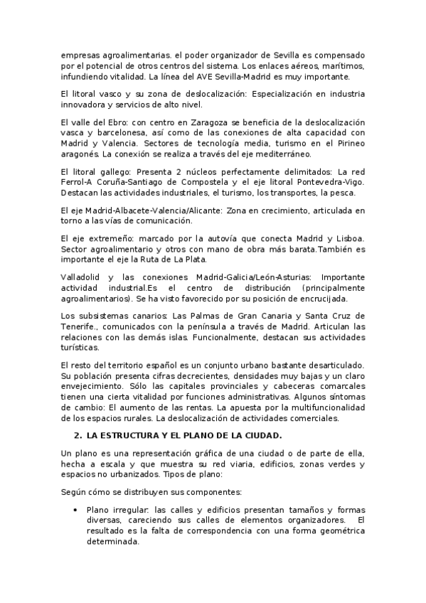 7. EL ESPACIO URBANO. El sistema de ciudades en España. Principales áreas y ejes urbanos. La estructura y el plano de la ciudad.