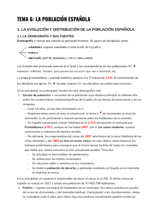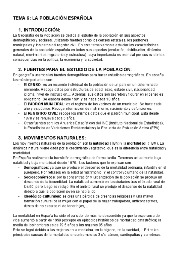 6. LA POBLACIÓN ESPAÑOLA. Evolución y distribución. La dinámica natural. Los movimientos migratorios. Estructura y composición de la población.