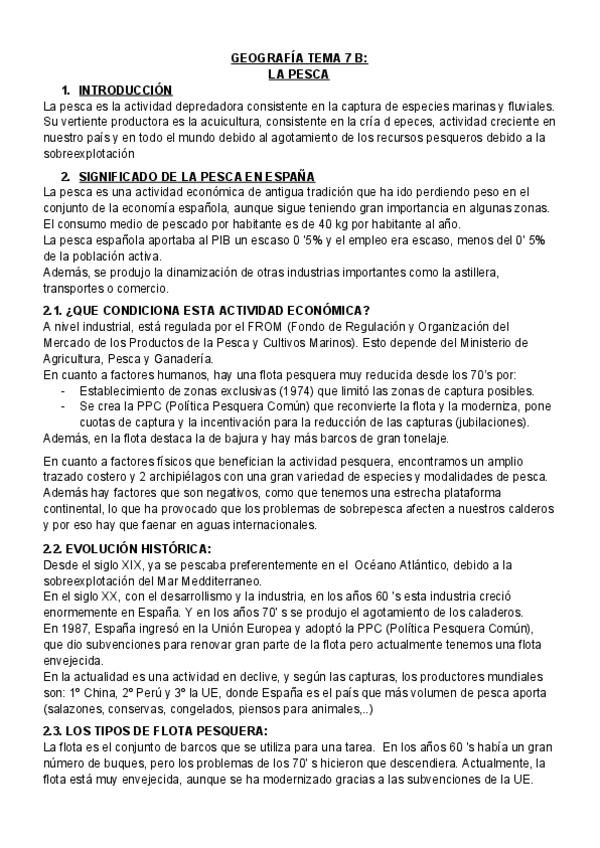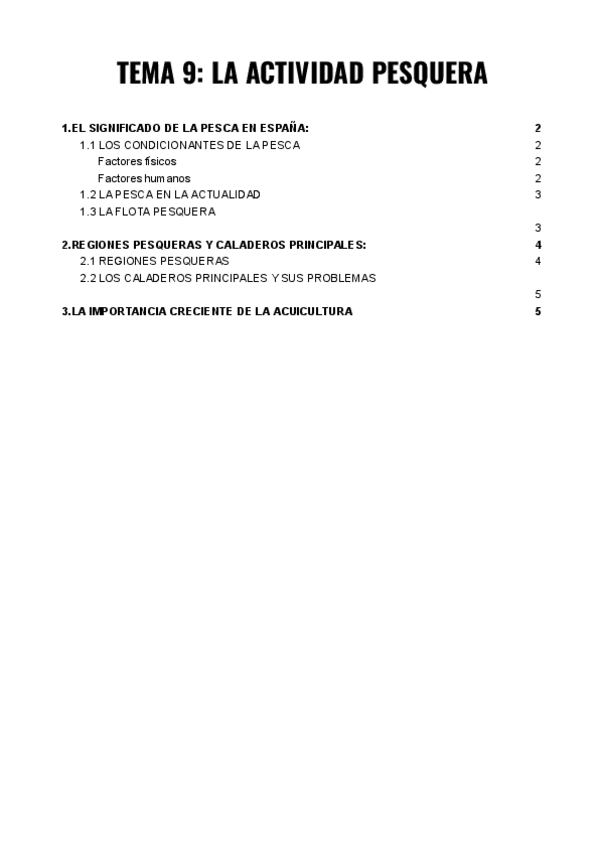 9. LA ACTIVIDAD PESQUERA. Significado de la pesca en España. Regiones pesqueras en España y principales caladeros. La importancia creciente de la acuicultura.