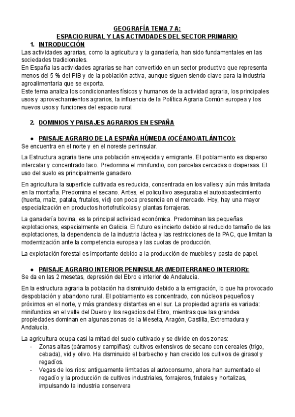 8. EL ESPACIO RURAL. Los condicionantes de la actividad agraria en España. La Política Agraria Comunitaria. Uso y aprovechamientos del espacio rural. Nuevas funciones del espacio rural: el paisaje.