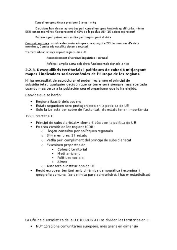 Apunts de l’última unitat de Geografia sobre l’organització política i territorial de Catalunya, Espanya i la UE