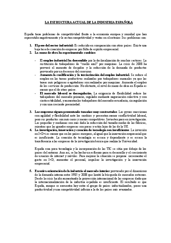 La estructura actual de la industria española