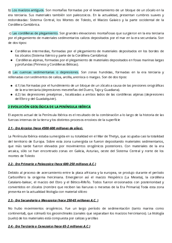 Tema 1, relieve, roquedo, evolución geológica de la península